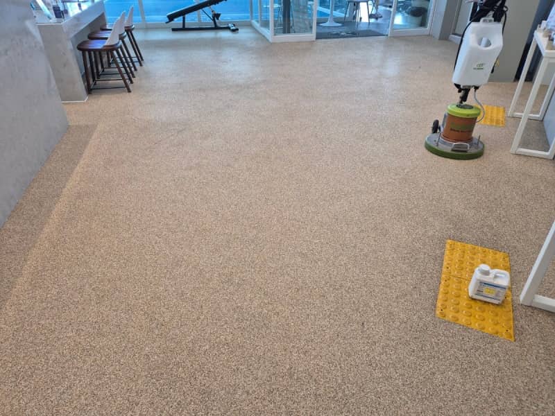 콩자갈 바닥은 자연석을 깔고 레진으로 코팅한 바닥재로, 자갈 틈새 사이로 먼지와 오염물이 쉽게 끼기 쉬워요. 일반 바닥재보다 최대 3배 많은 오염물질을 흡수하죠! 미국 청소 산업 협회 (ISSA)의 보고에 따르면, 상업 시설 바닥은 하루 평균 1000명 이상의 사람들이 지나가면 최대 4kg의 먼지와 오염물도 쌓일 수 있다고 하네요!! 헬스장 같은 곳이면 더 말할 것도 없겠죠? 💦