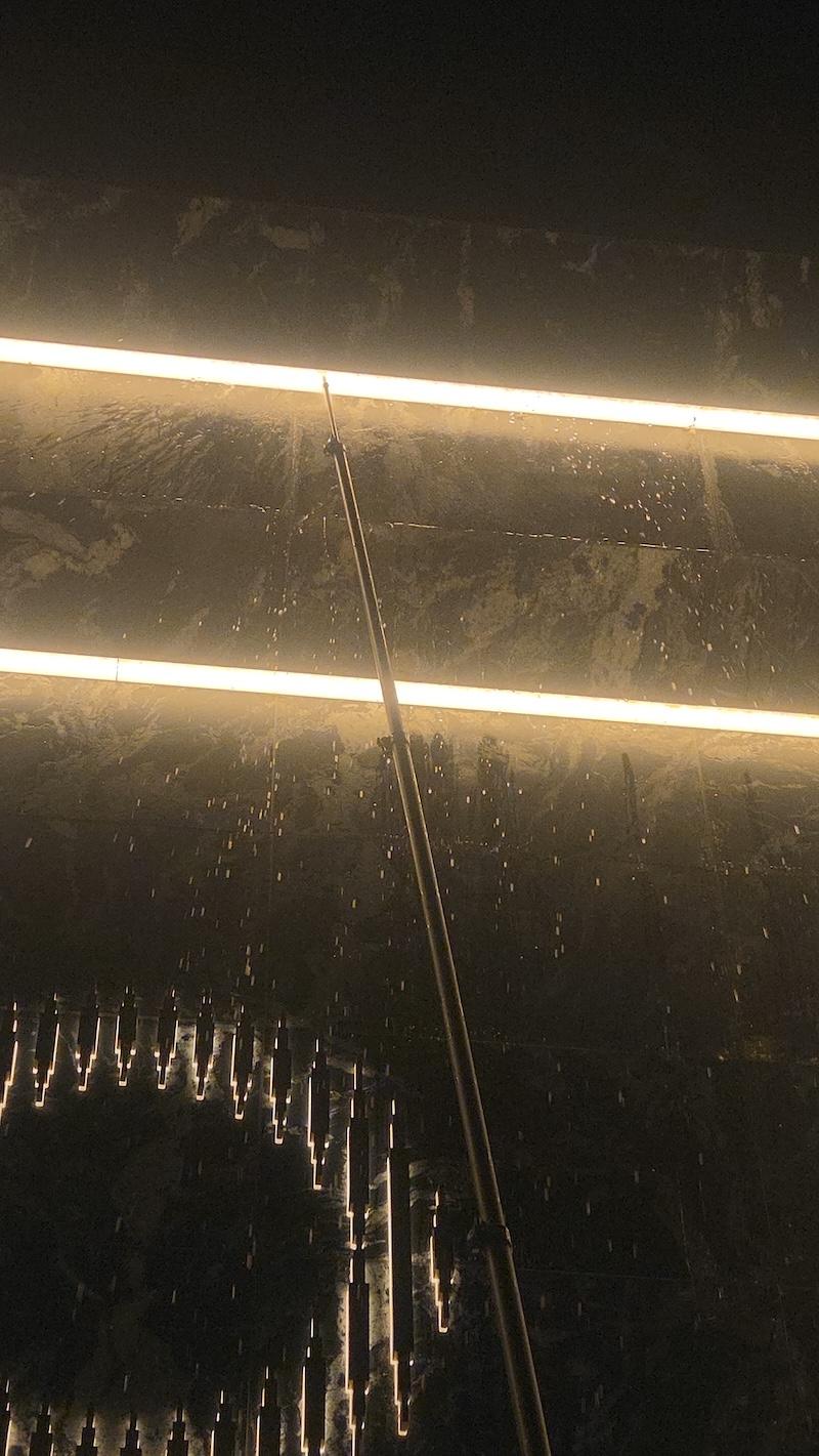 고압으로 매장 천장 모서리와 조명 근처를 강하게 물줄기를 쏴줘야 하는데요, 간접등 근처엔 얇은 거미줄과 알집이 여러 겹 있어서 방향을 여러번 바꿔가며 없애줘야 한답니다.